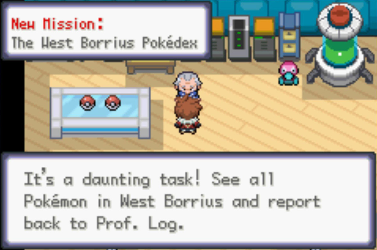 | #062: The West Borrius Pokedex | Mission Start Speak to Professor Log after returning his package from Bellin Town |